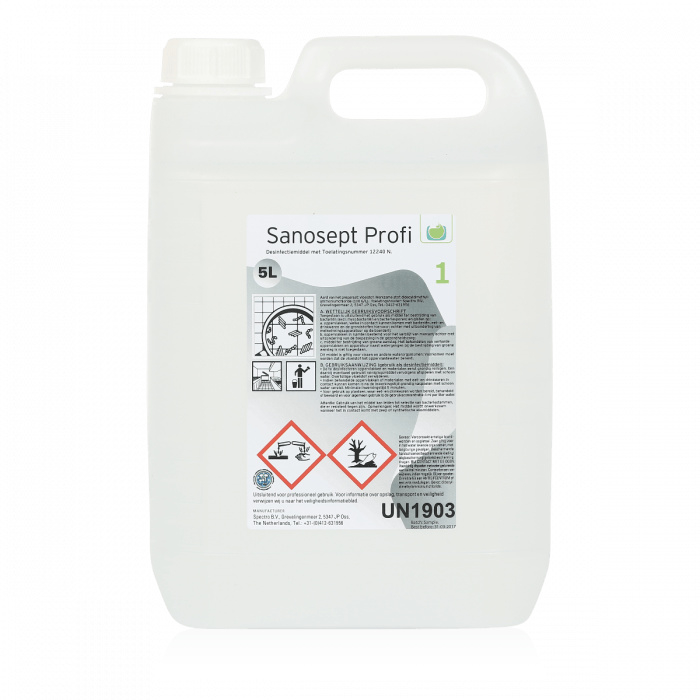 Sanosept Profi is een desinfectant op basis van quaternaire ammoniumverbindingen. Sanosept Profi is uitermate geschikt voor gebruik in de voedingsindustrie, keukens, zorginstellingen, zwembaden en is geschikt voor gebruik in een schuimreinigingssysteem. Daarnaast is Sanosept Profi ook in te zetten voor het verwijderen en bestrijden van groene aanslag op paden, muren, daken, tuinmeubilair e.d.